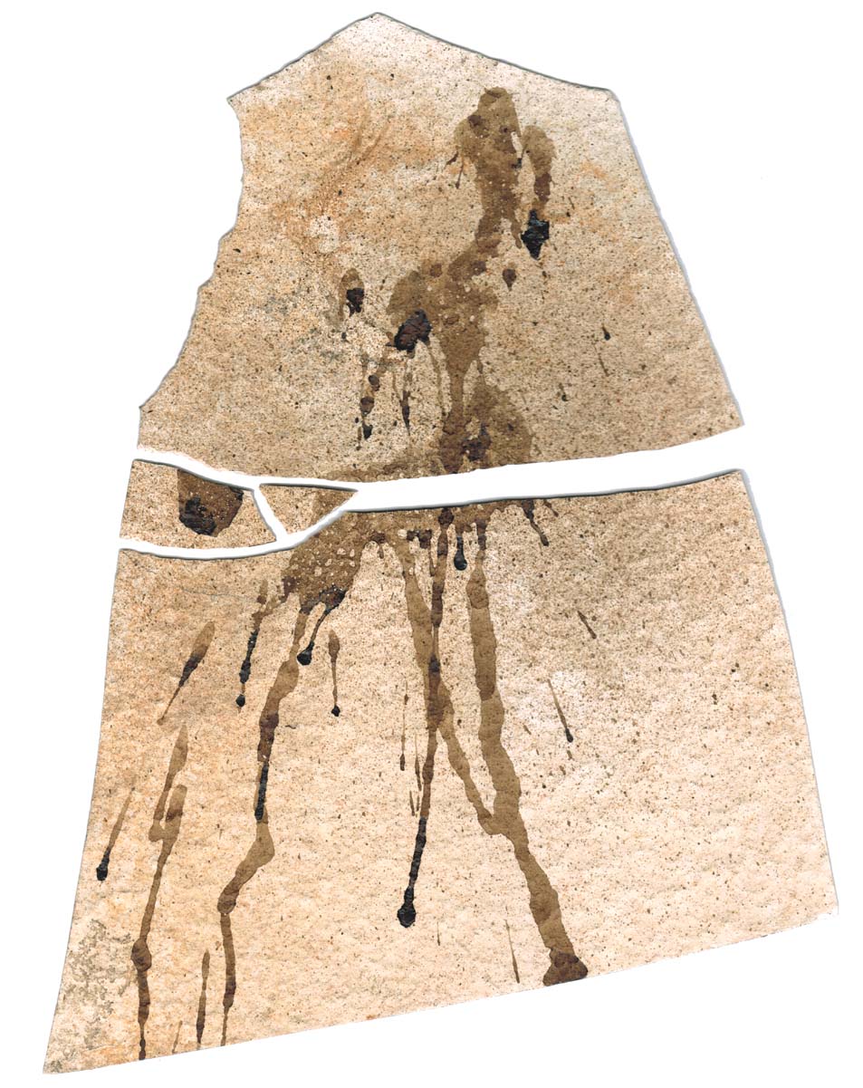 zerbrochen | 76x64 cm | Steinplatte + Kautschuckfarbe | Scan + Digitaldruck auf Kunststoffleinen | 2018